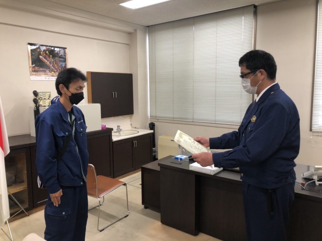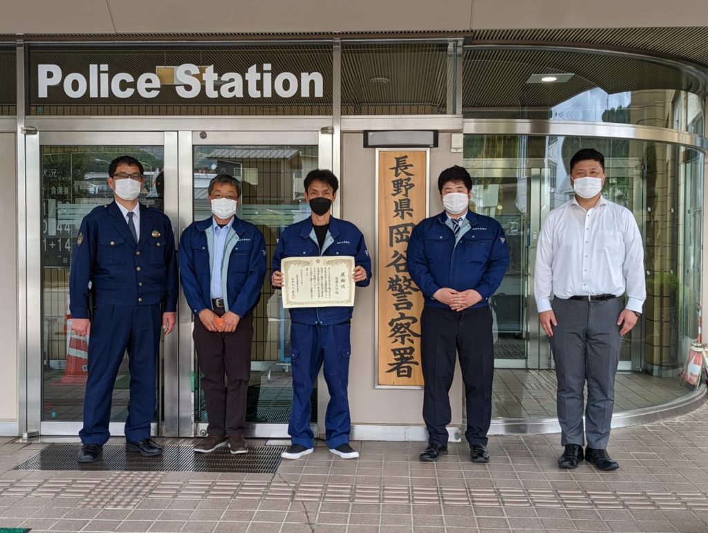 本日、長野県警 岡谷警察署様より弊社乗務員が感謝状を頂きました!